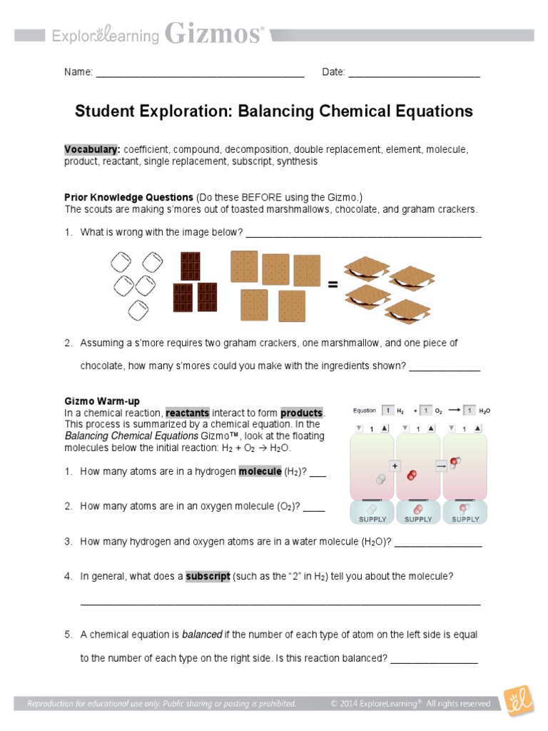 Student exploration balancing chemical equations gizmo answer key. Check spelling or type a new query. We did not find results for: Maybe you would like to learn more about one of these?
